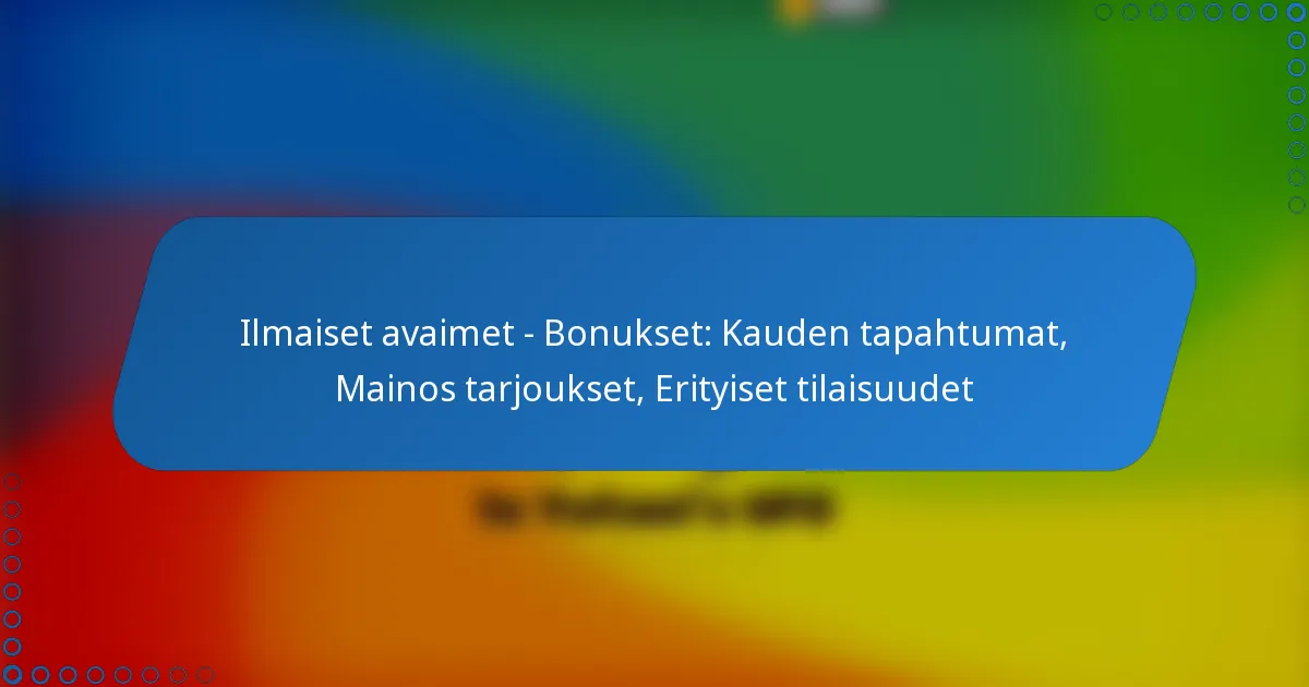 Ilmaiset avaimet – Bonukset: Kauden tapahtumat, Mainos tarjoukset, Erityiset tilaisuudet